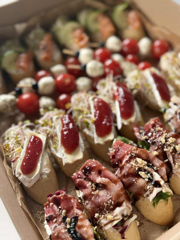 Box kanapeczek Finger Food to zestaw pełen wyrafinowanych smaków, który idealnie sprawdzi się podczas spotkań biznesowych, eventów, przyjęć czy uroczystości rodzinnych. Każda przekąska to małe dzieło sztuki – piękne, smaczne i przygotowane z najwyższej jakości składników