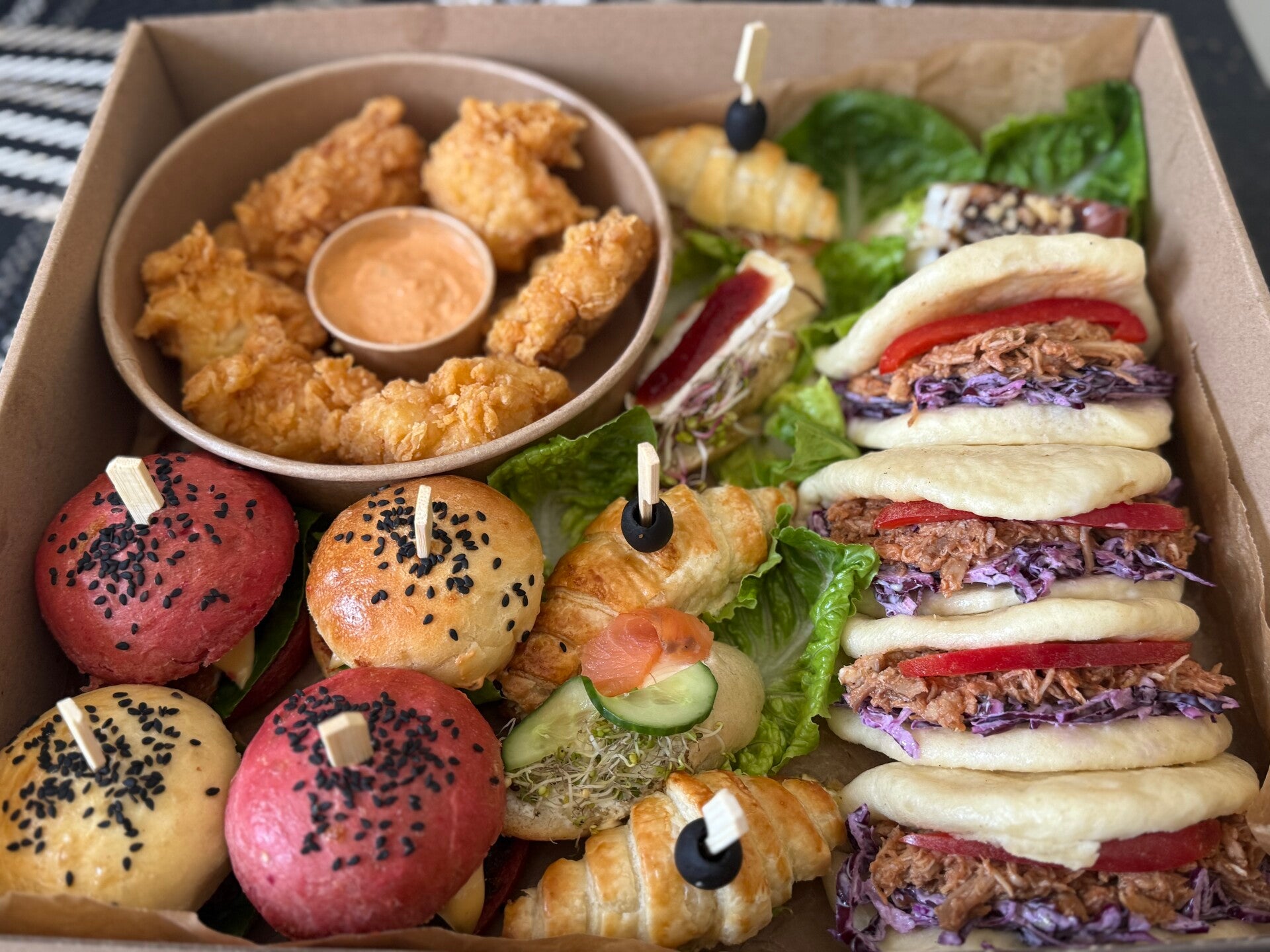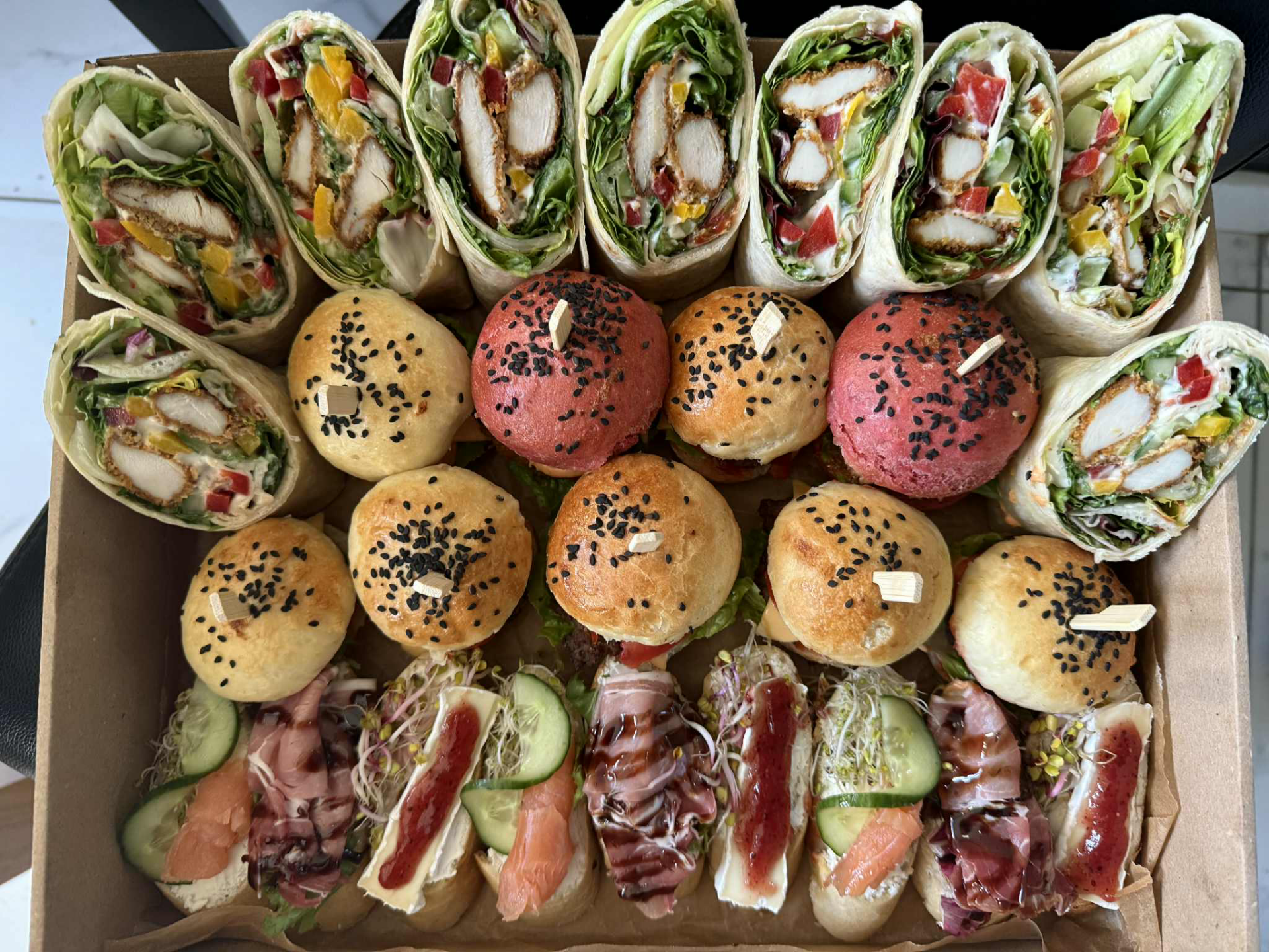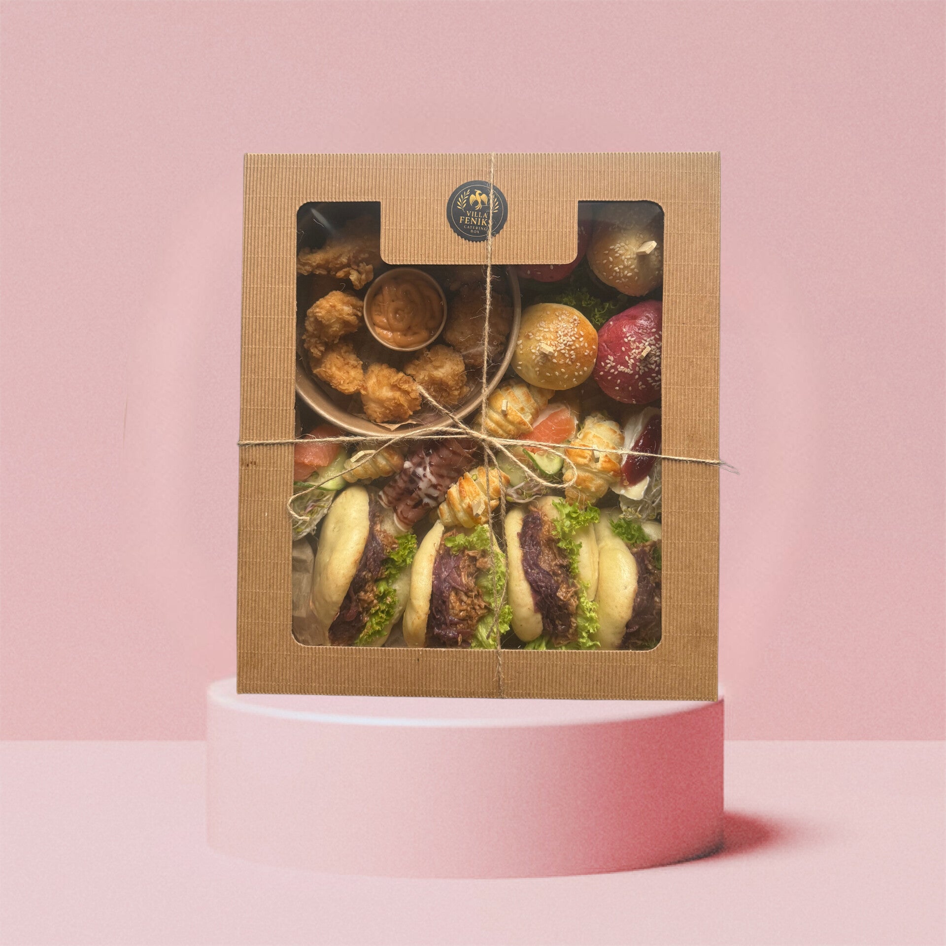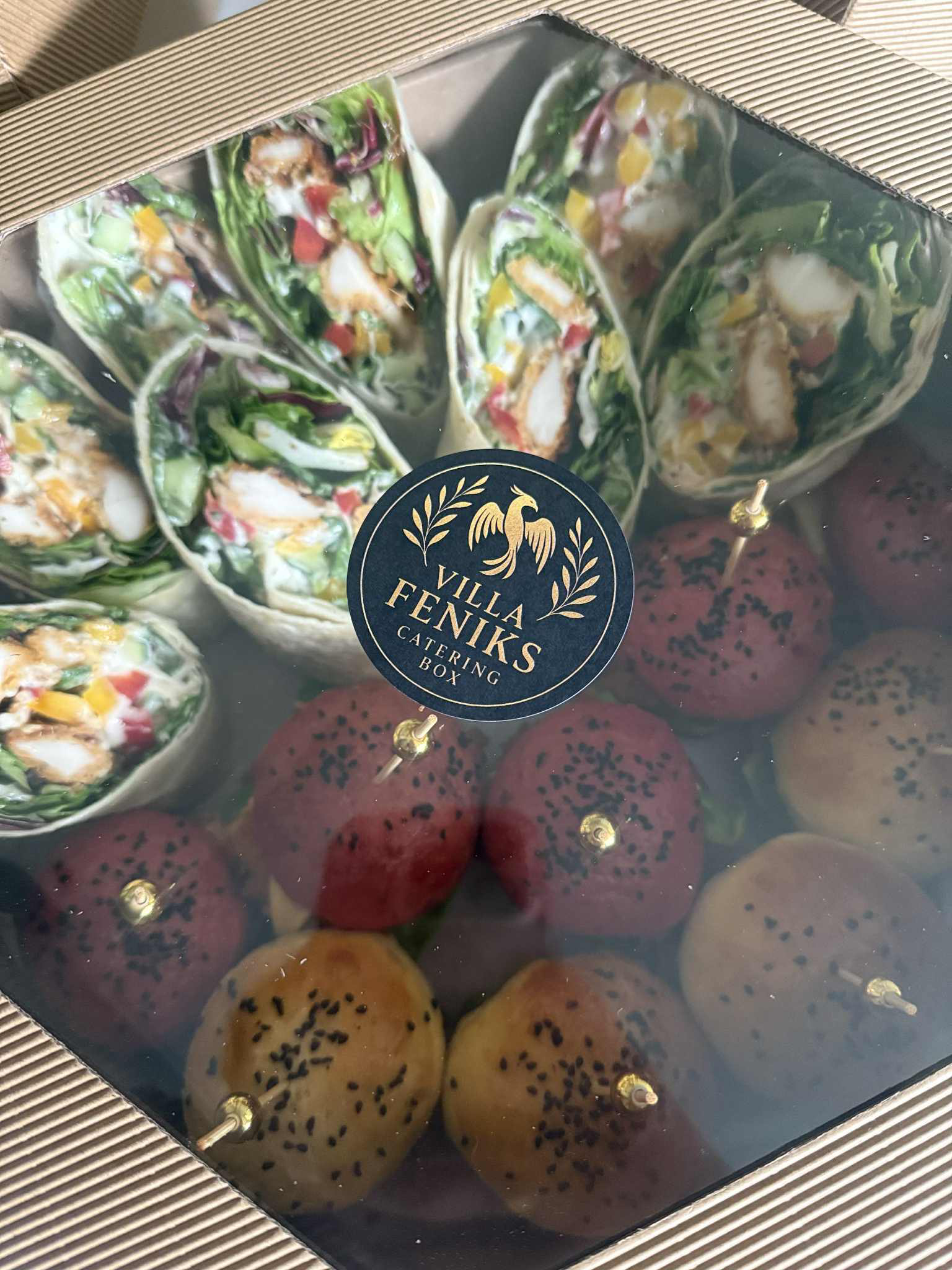 To kompozycja najlepszych propozycji Villa Feniks Catering Box – idealna na spotkania, imprezy lub poczęstunek w pracy.